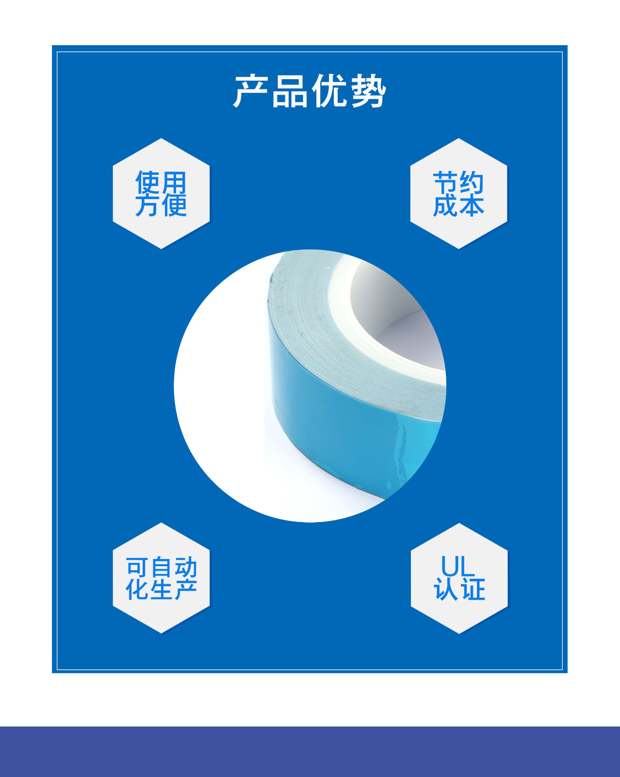 BN-TAPE100導(dǎo)熱雙面膠是一款自粘性熱界面材料,產(chǎn)品使用玻璃纖維增強(qiáng),表面使用離型膜保護(hù)。本產(chǎn)品能代替一般的導(dǎo)熱矽膠片,由于產(chǎn)品本身有很強(qiáng)的粘性,在使用過程中只需要很小的壓力便能將電子元器件和散熱器很好的粘接,不需要額外使用螺絲緊固,可以節(jié)省操作人員,實現(xiàn)自動化生產(chǎn)。BN-TAPE100能在中低溫以及高溫環(huán)境中保持較強(qiáng)的粘性,并能長期使用。