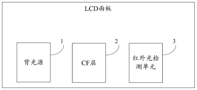 背光源用于為LCD面板提供充足的亮度與分布均勻的平面光源,使得LCD面板能夠正常顯示畫面。由于LCD面板中的各個組件對紅外光有較高的透過率,因此背光源中的紅外燈11發(fā)射的紅外光可以順利穿透該LCD面板到達(dá)手指。
