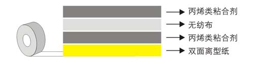 采用柔軟、強(qiáng)韌無紡布為基材,涂以丙烯酸高分子膠粘劑,具有良好的耐溫性及粘合性能。